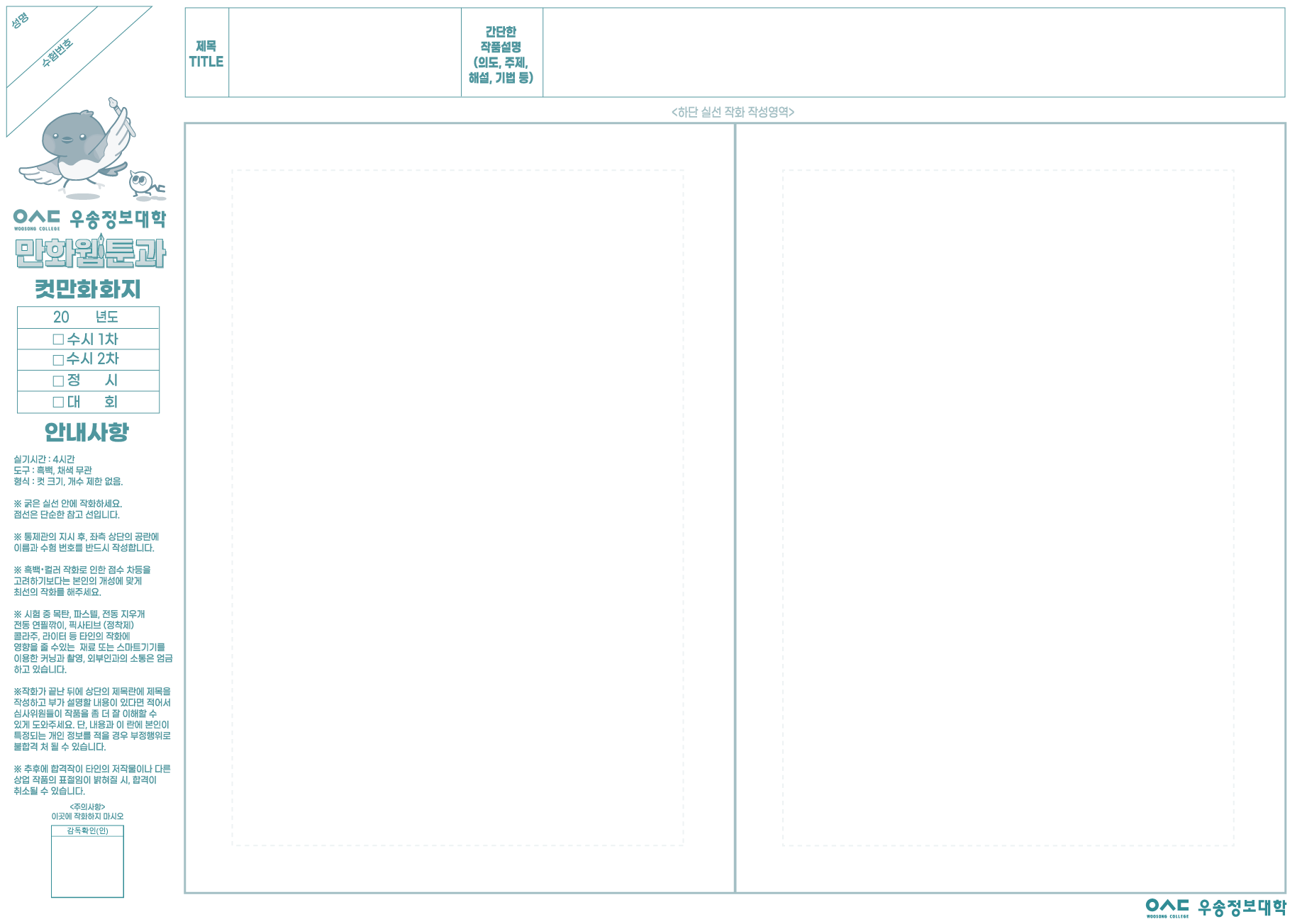●응시자는 학교에서 제공하는 3절지 화지 내부의 4절 사이즈의 작화란에 작화한다. (상세규격은 학과 홈페이지 참고).